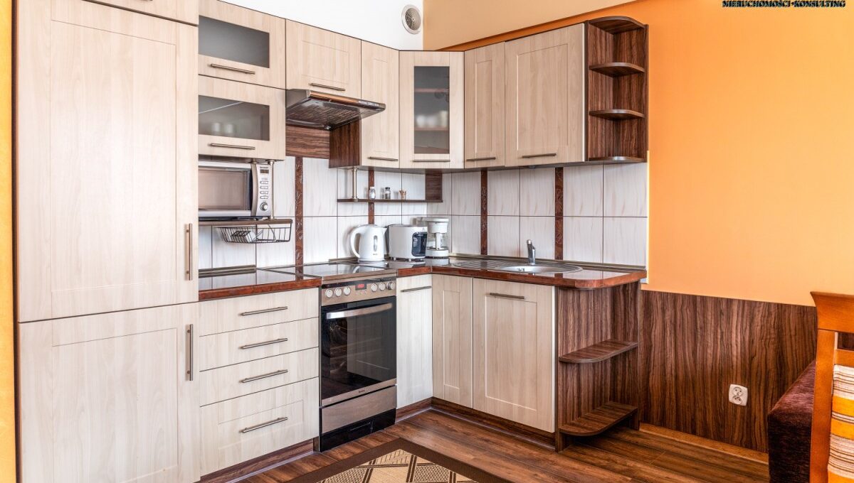 W aneksie kuchennym znajduje się kuchenka z płytą ceramiczną;