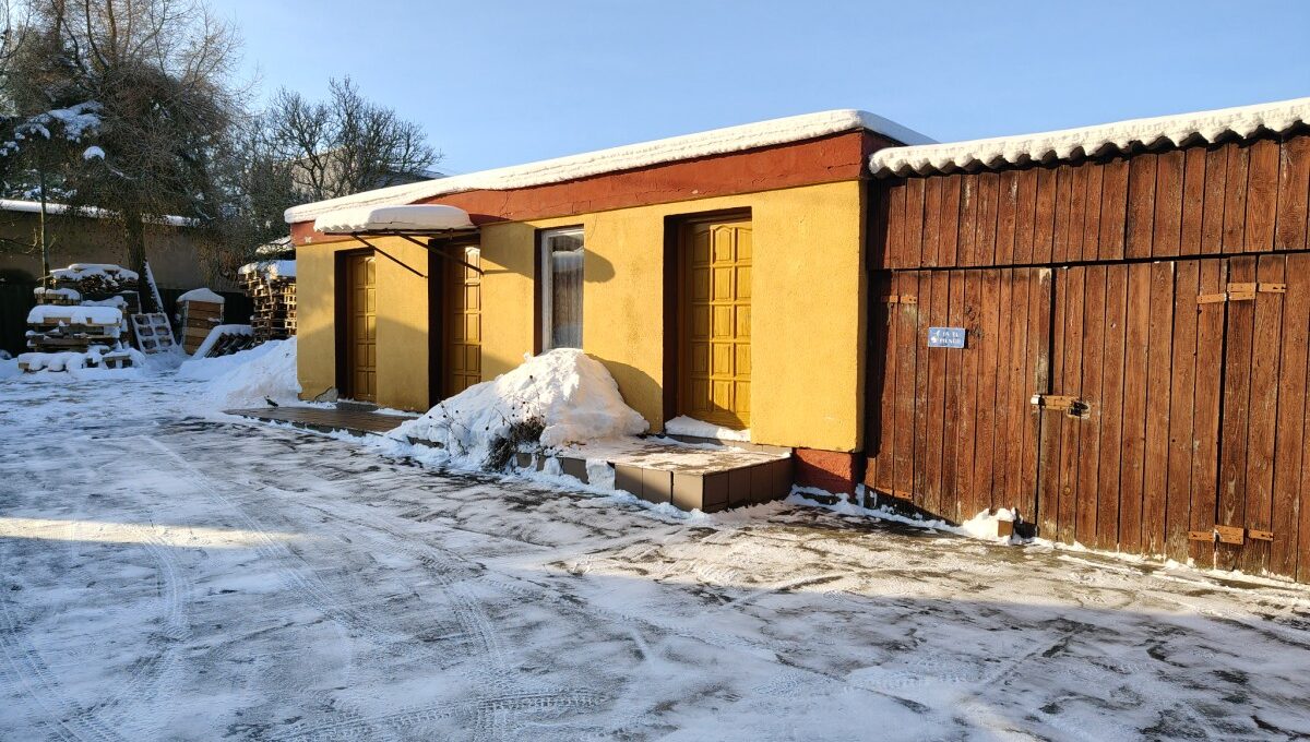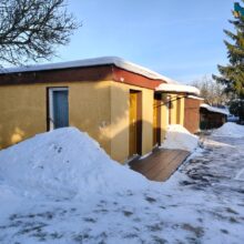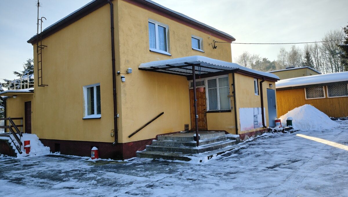 - Na parterze znajdują się dwa pokoje (1 nie ogrzewany), kuchnia, łazienka z WC, korytarz. Dobudowano pomieszczenia sanitariatów z wejściem od podwórza (do obsługi domków letniskowych);