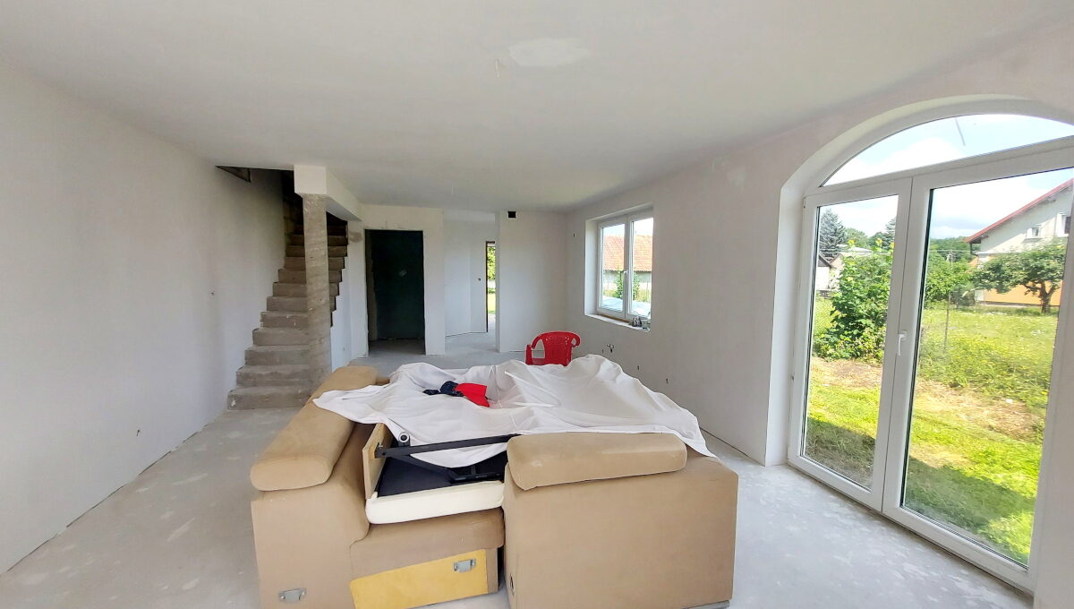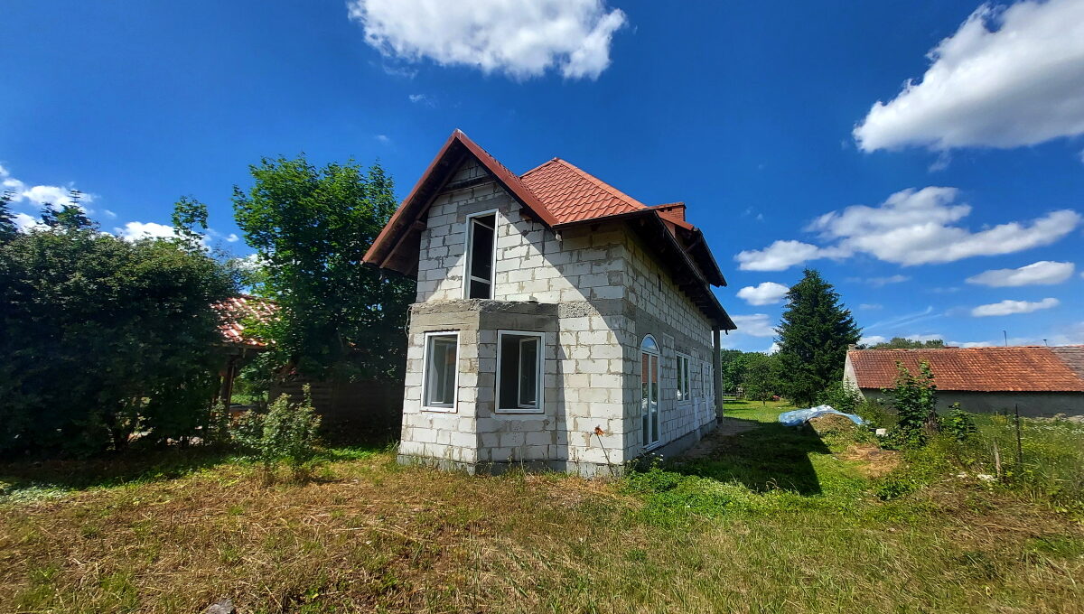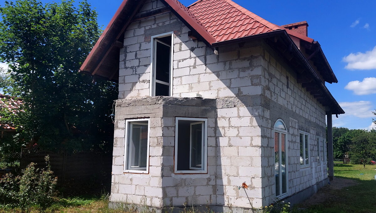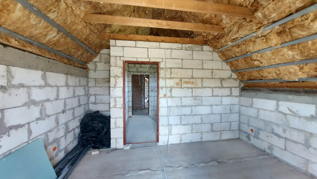 Piętro budynku nieotynkowane, poddasze ocieplone wełną mineralną;