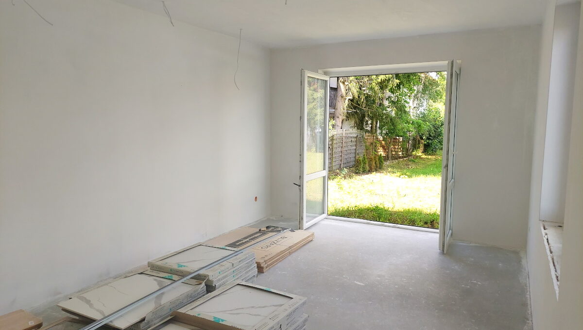 – salon z aneksem kuchennym i wyjściem na ogród o pow. ok. 32,12 m2;
