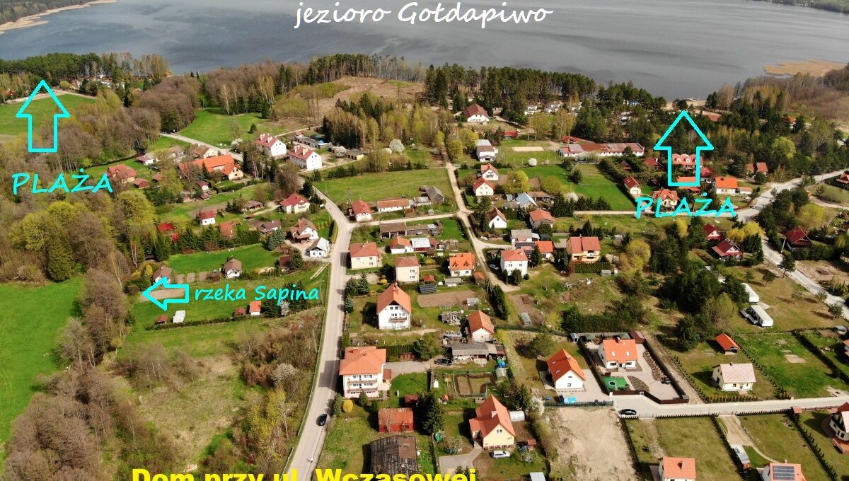 Dom w trakcie budowy zlokalizowany w sąsiedztwie rzeki Sapiny oraz przy drodze prowadzącej do jeziora Gołdapiwo. Dostęp do plaży poprzez dwie plaże gminne.