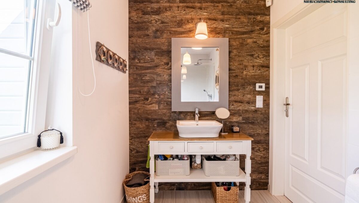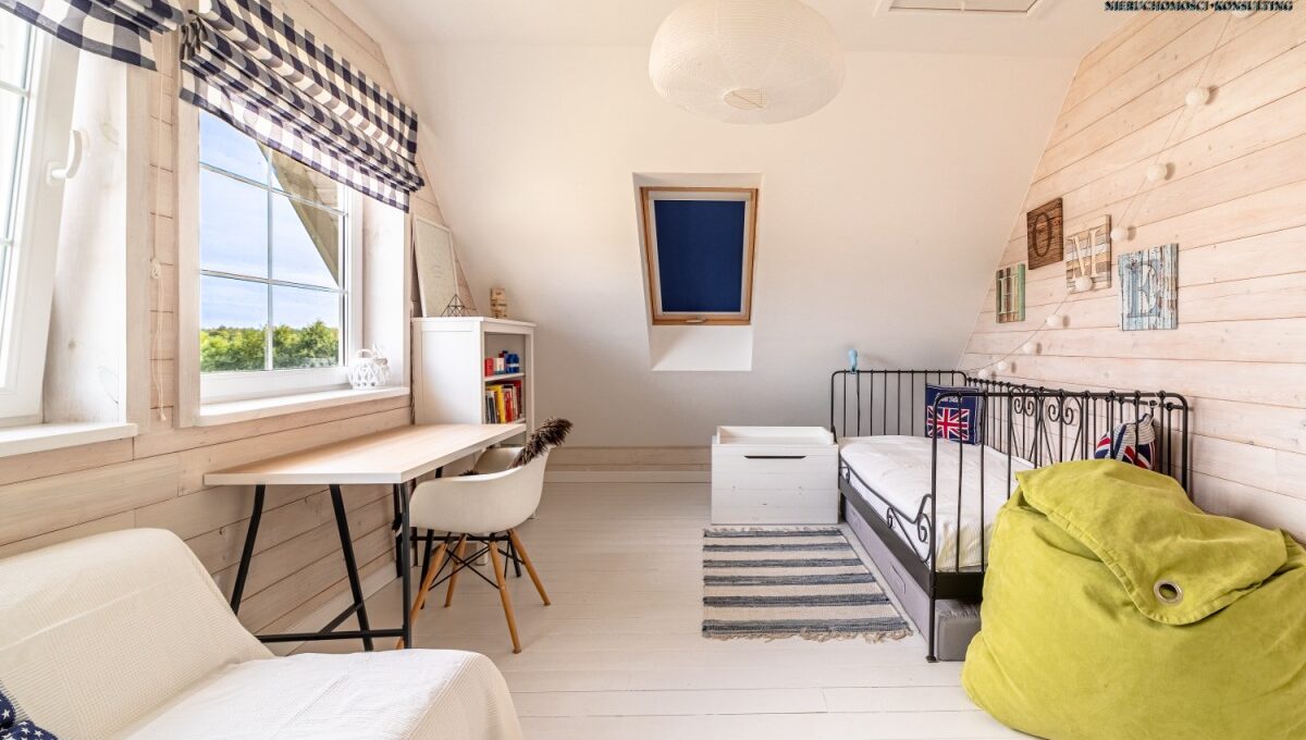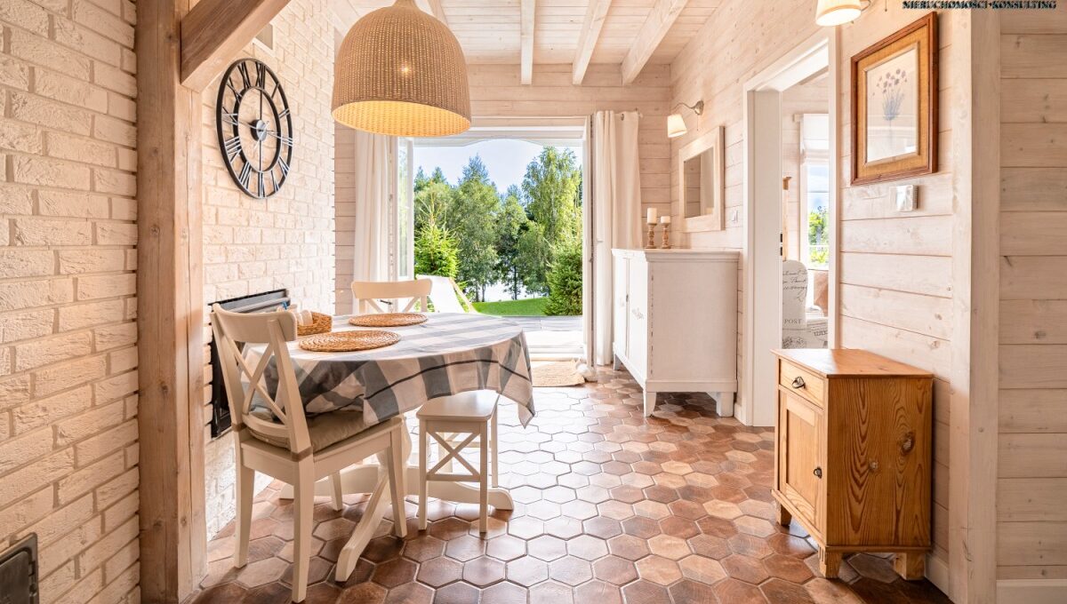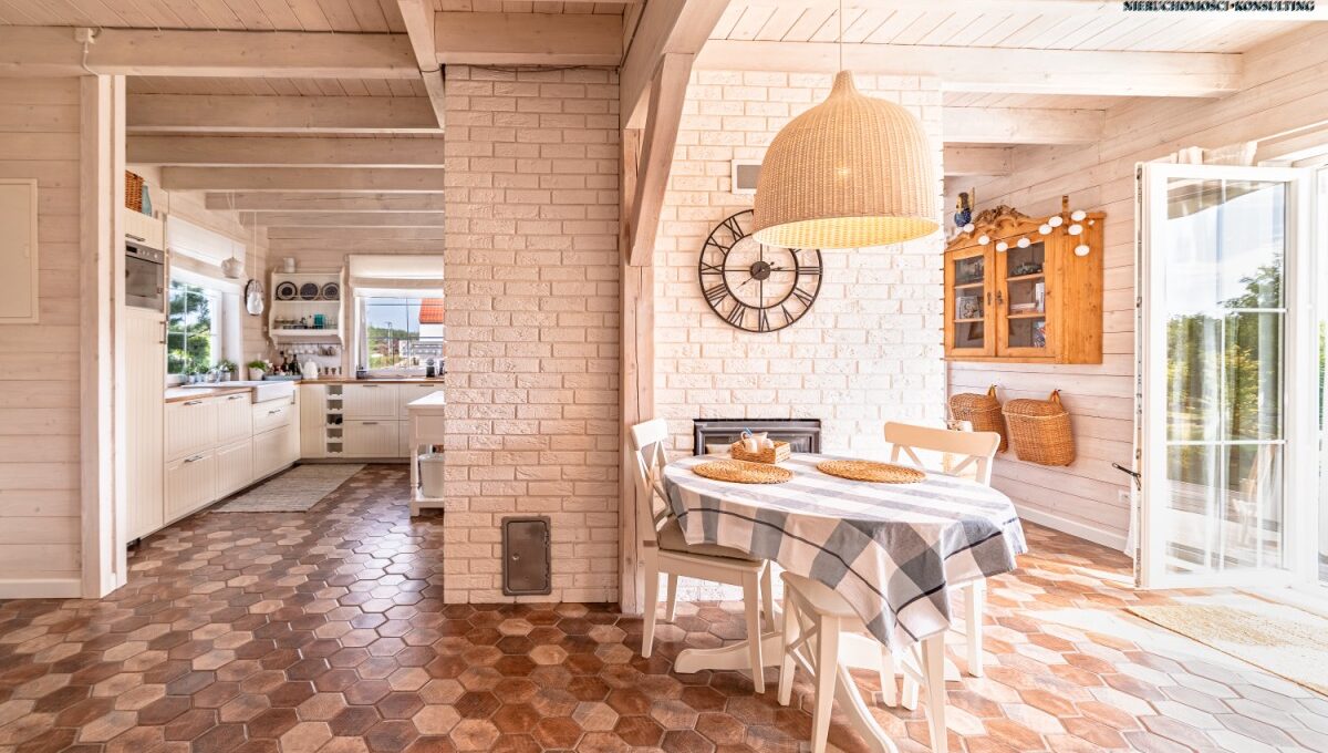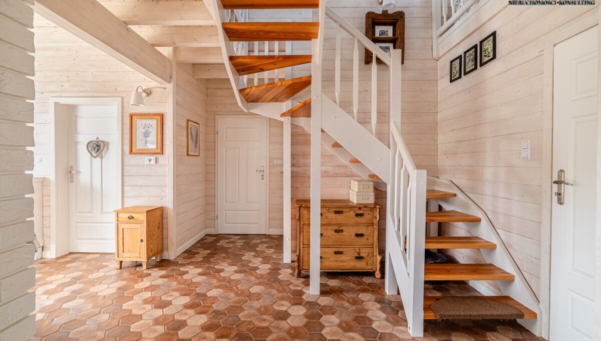 - Podłogi: na parterze terakota, na poddaszu deska malowana;