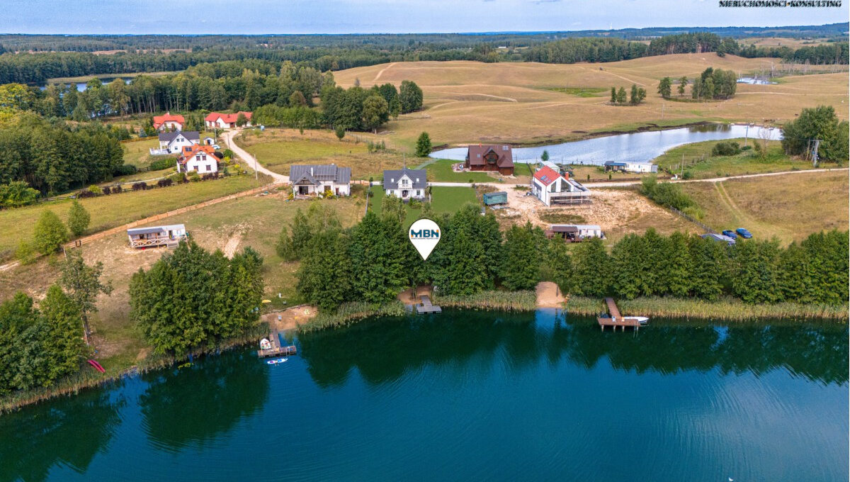 - Działka dzięki umiejscowieniu na pagórku ma panoramiczny widok na jezioro i okolicę;