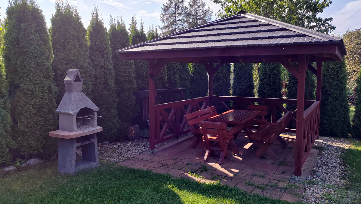 • Udogodnienia: Na działce znajduje się również wiata grillowa, odizolowane miejsce na zaparkowanie auta;