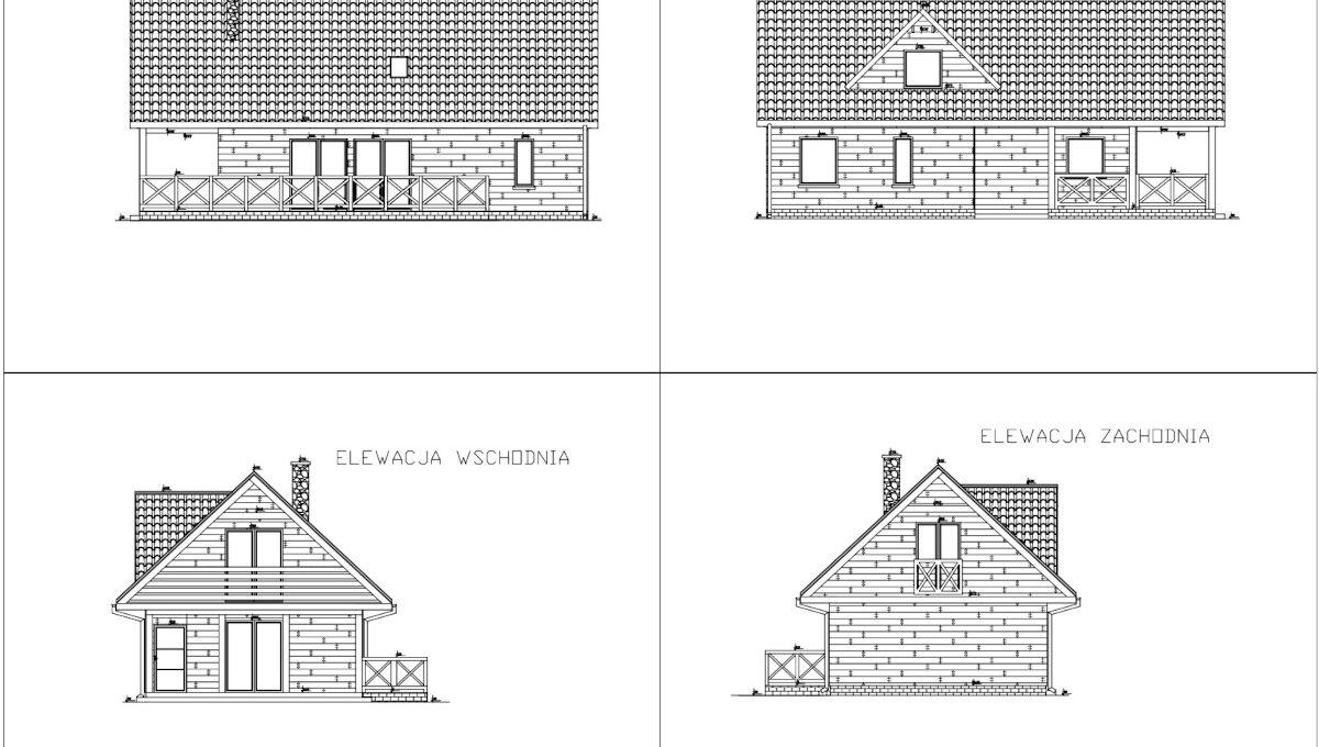 - Dom drewniany w konstrukcji szkieletowej , pokryty dachem w kolorze ceglastoczerwonym .