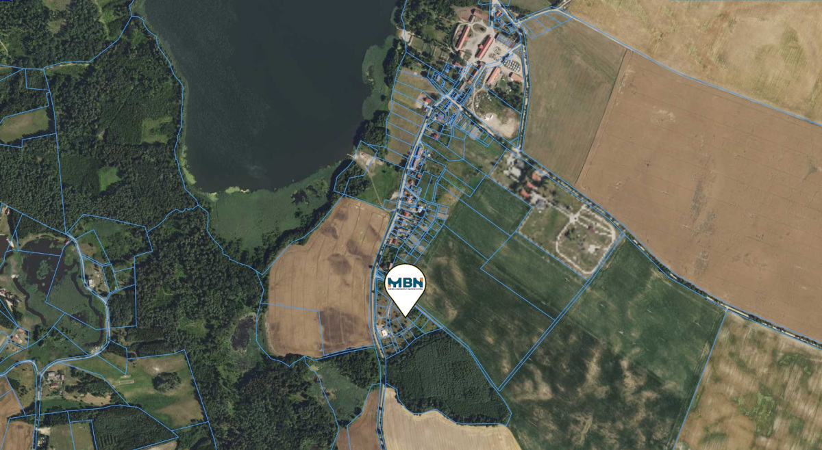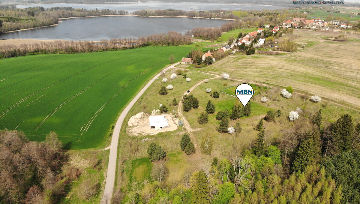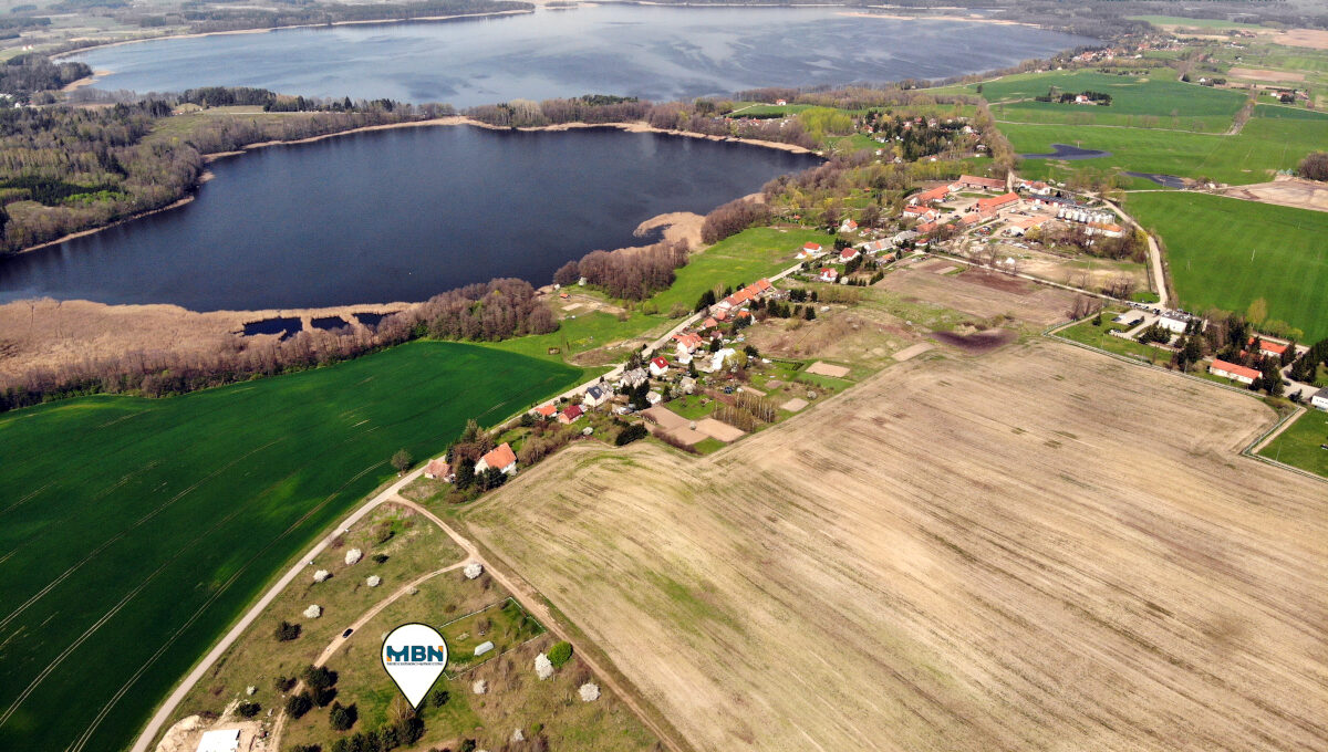 - Inne działki budowlane, domy mieszkalne, jezioro, las;