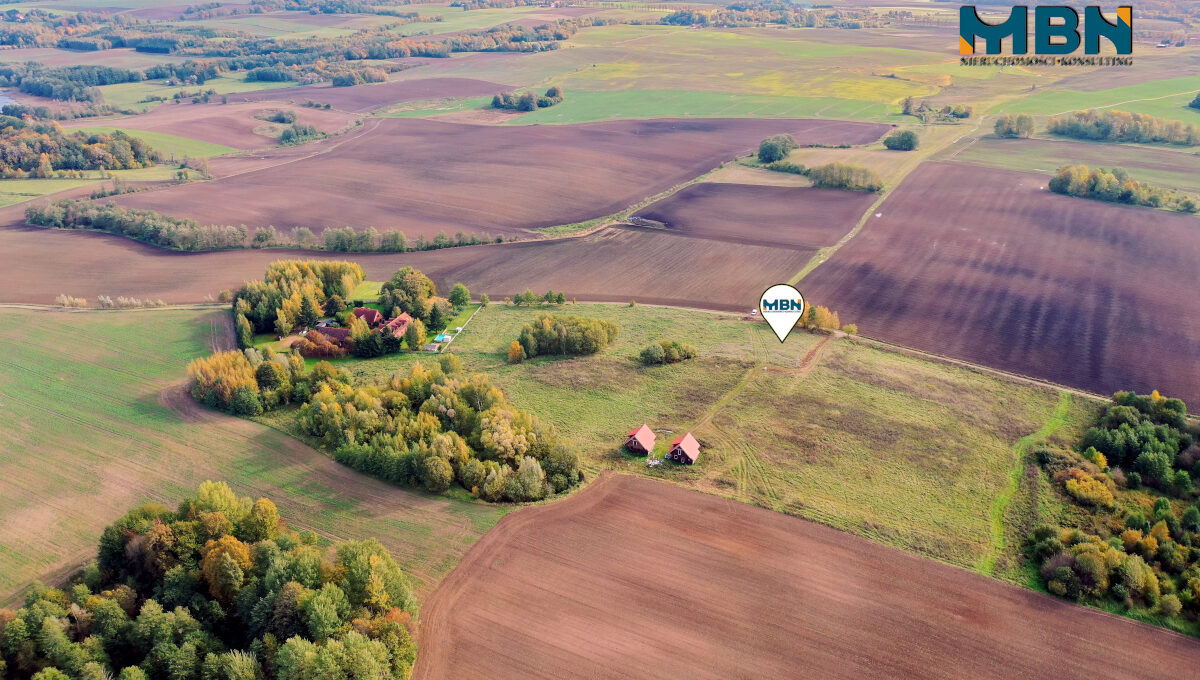 Działka położona jest w malowniczej Krainie Tysiąca Jezior, w miejscu cichym i spokojnym, sprzyjającym wypoczynkowi na łonie natury w otoczeniu łąk i pół oraz małego jeziorka Węgielsztyńskiego i znacznie większego Rydzówka. W sąsiedztwie siedliska i gospodarstwa agroturystycznego.