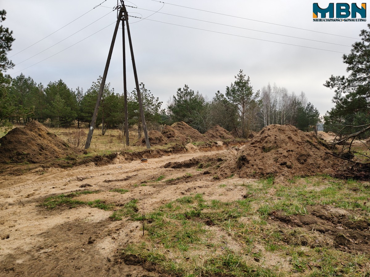 - Prąd: możliwość przyłączenia, nad fragmentem działki przebiega napowietrzna linia SN;