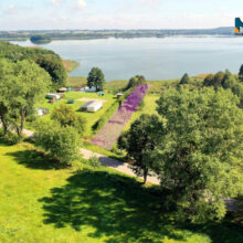 - Ukształtowanie: stosunkowo płaski, opadający w kierunku jeziora;