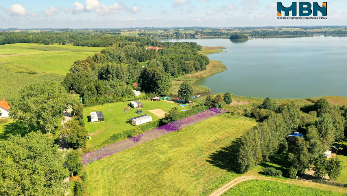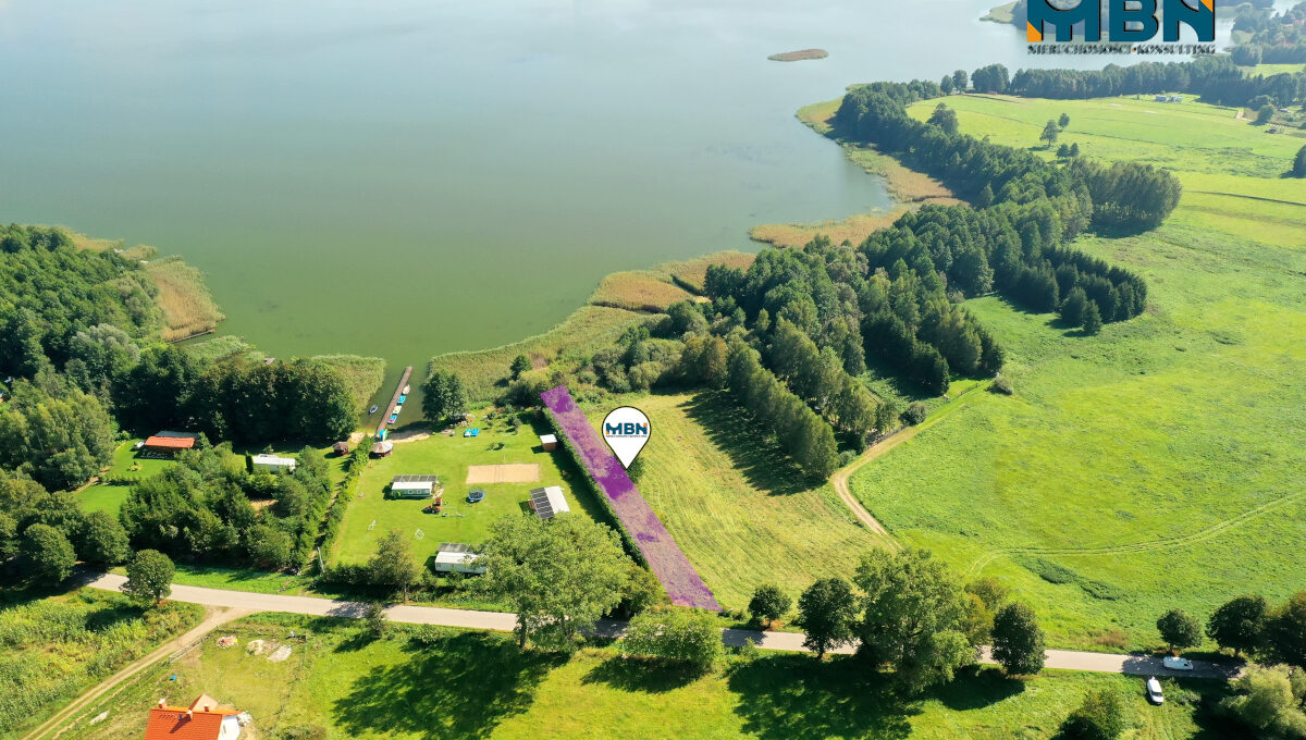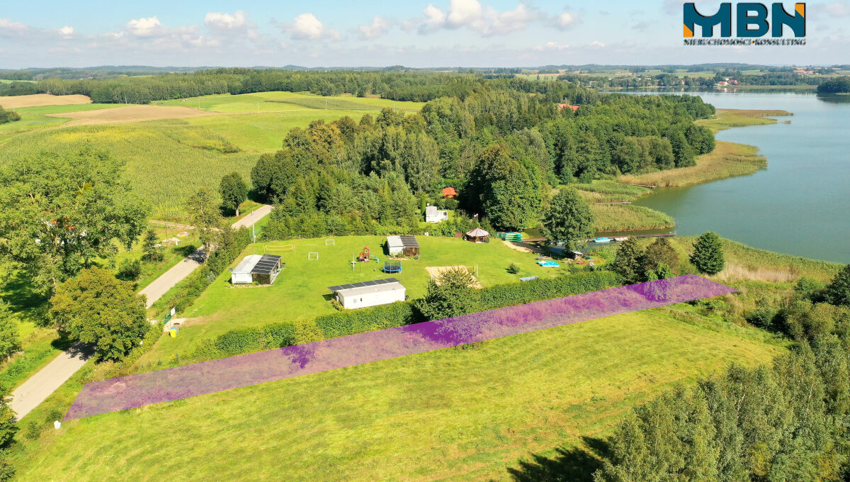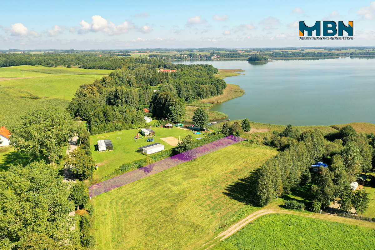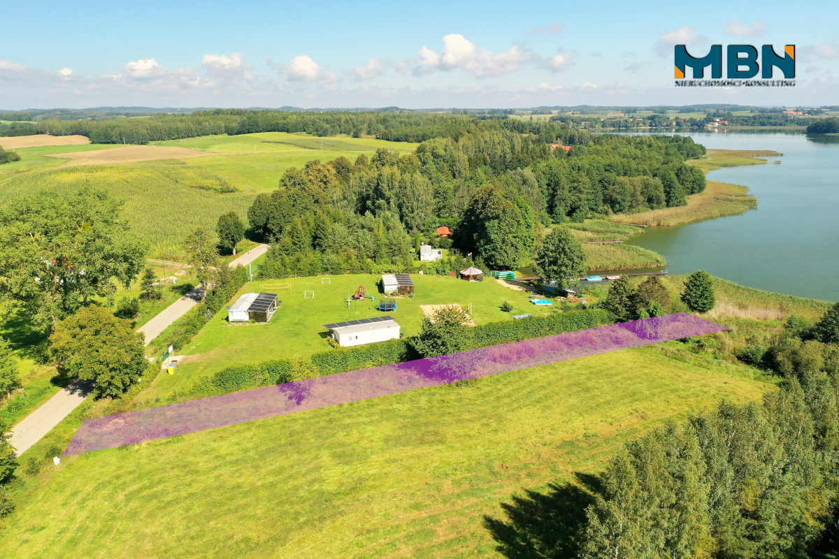 Przedmiotem sprzedaży jest działka o pow. 764m2 z linią brzegową jeziora.