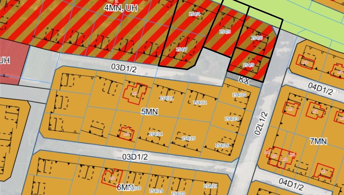 Działki objęte są symbolem 4MN, UH – tereny budownictwa mieszkaniowego o niskiej intensywności zabudowy, tereny usług i handlu.
