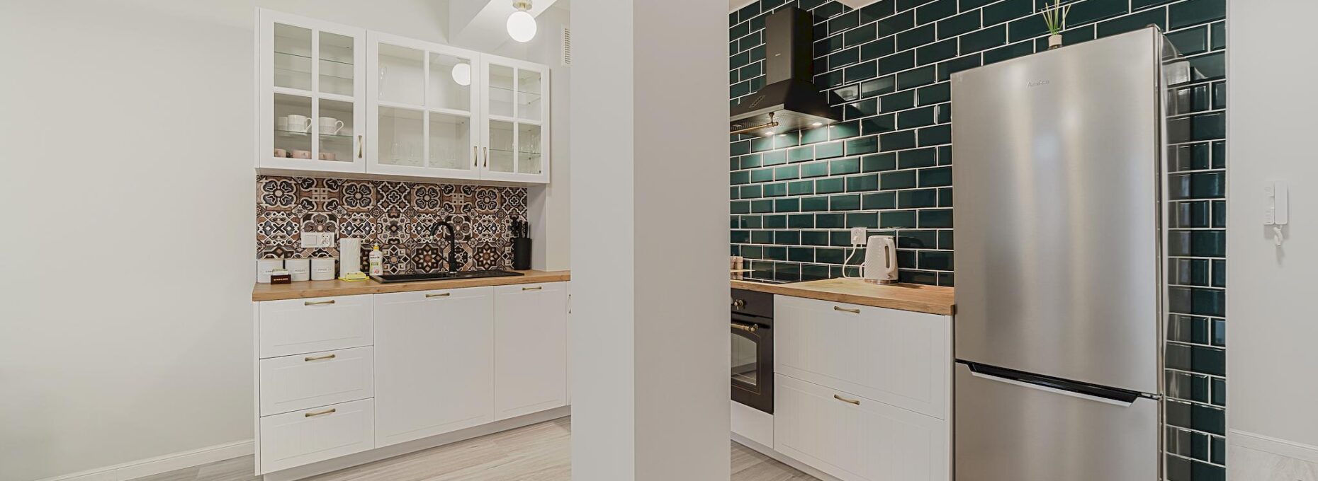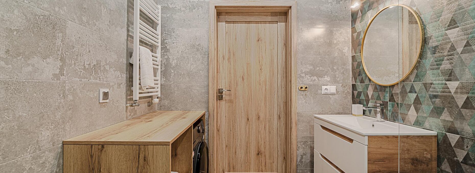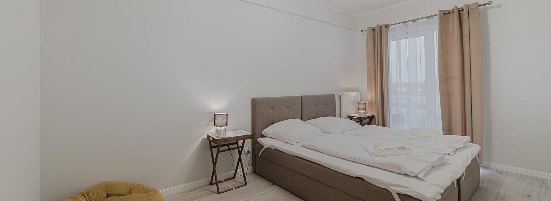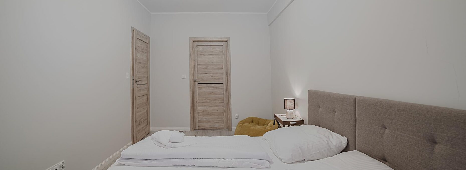 • Ilość pokoi: sypialnia z osobnym pomieszczeniem (garderobą), salon z aneksem kuchennym, łazienka z wanną i WC;