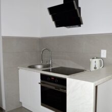 Salon z aneksem kuchennym: o pow. ok 24,25m2. Aneks kuchenny wyposażony w meble kuchenne, płytę indukcyjną, nowoczesny okap, piekarnik, lodówkę w zabudowie; Salon wyposażony w stół z wygodnymi krzesłami, rogówkę ze stolikiem kawowym, szafkę rtv;