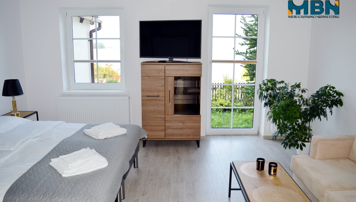 mieszkanie z widokiem na jezioro Święcajty zaledwie 25 metrów od tafli wody