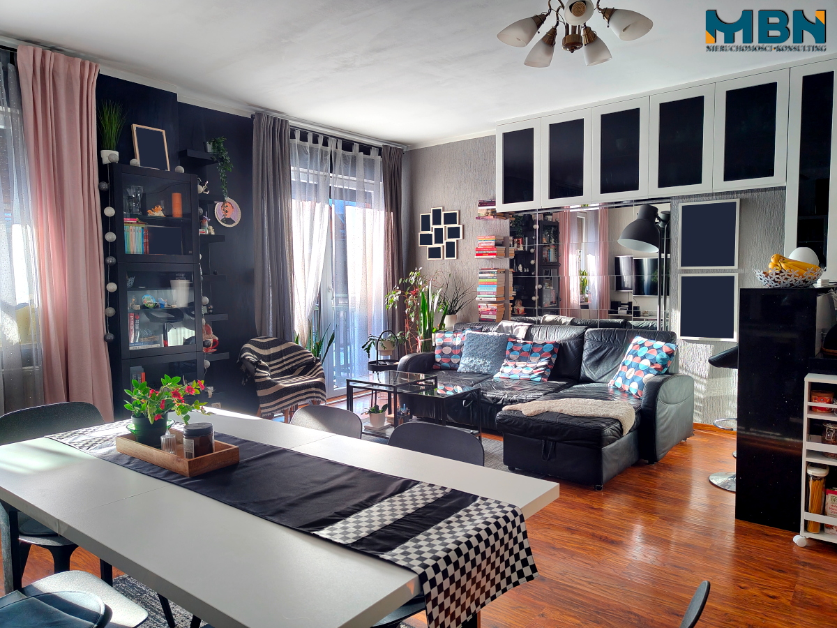 - Salon: pow. ok 27,80m2 z wyjściem na balkon;