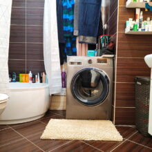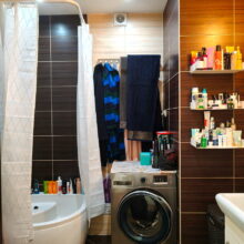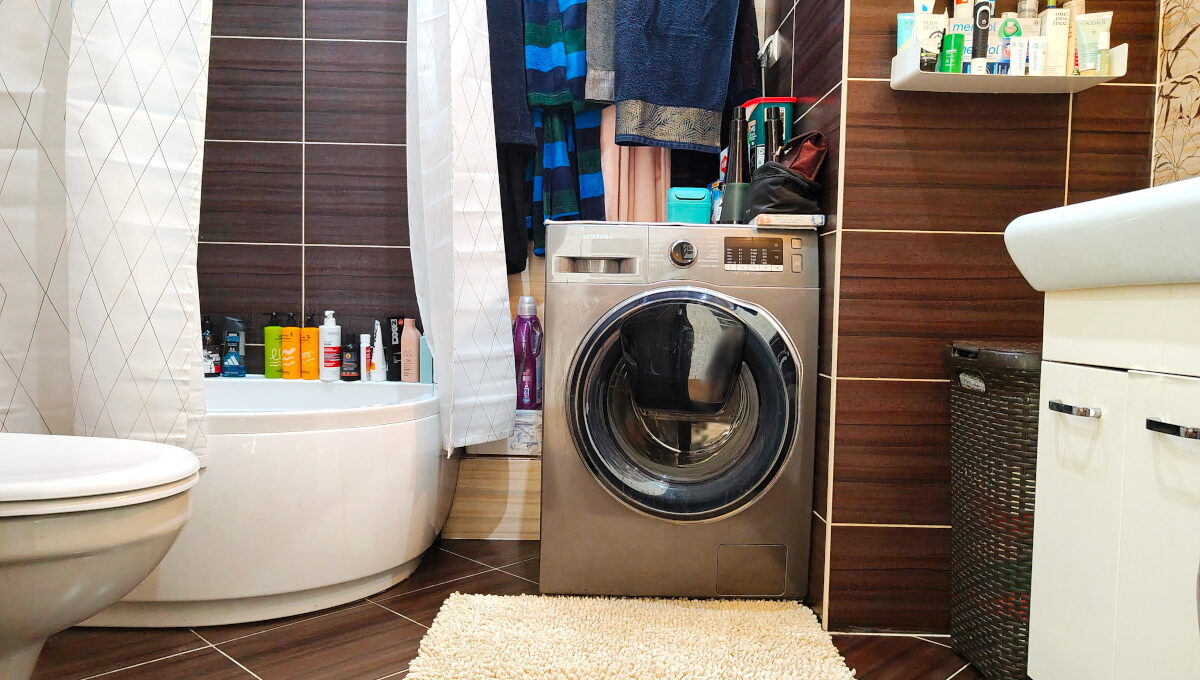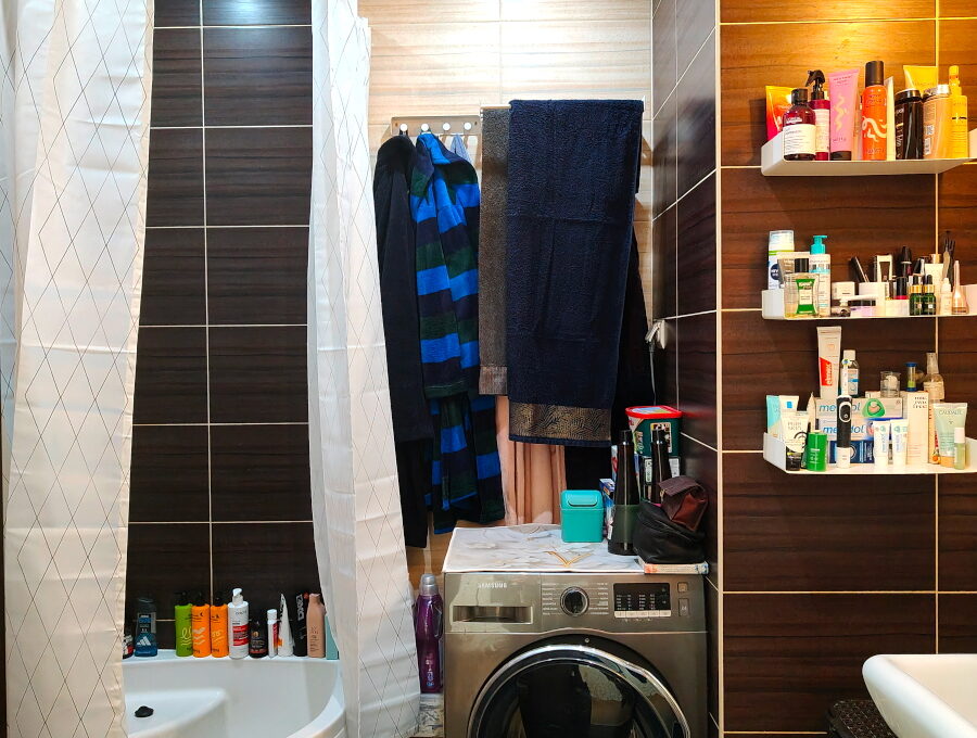 - Łazienka: pow. ok 4,70m2, umywalka osadzona na szafce, WC podwieszany, grzejnik typu suszarka, głęboki brodzik z siedziskiem, pralka Samsung;