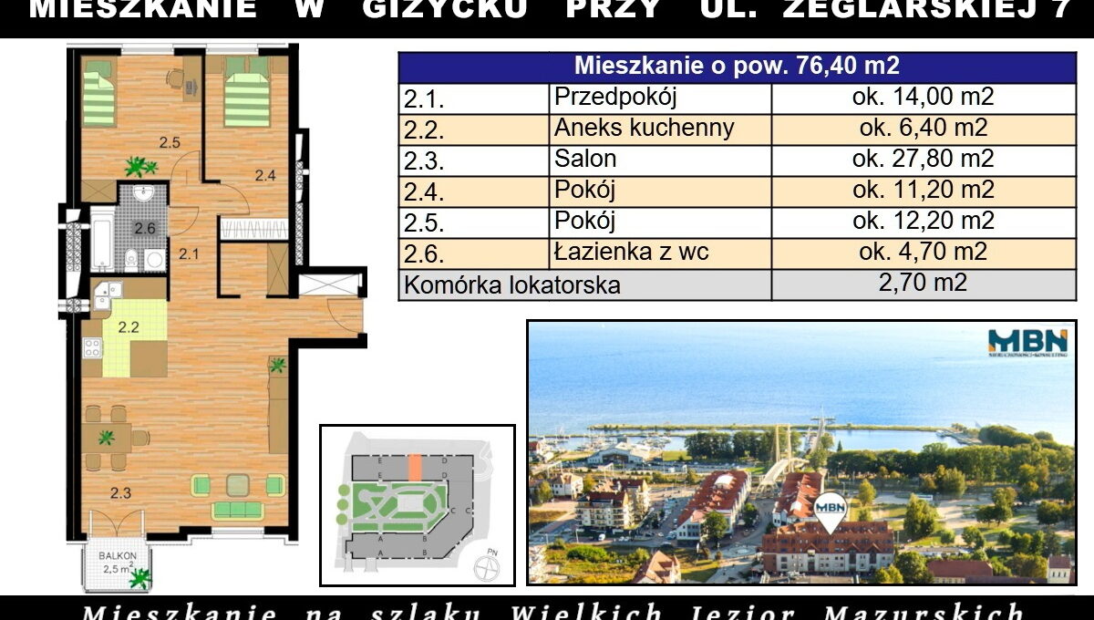 Powierzchnia użytkowa: 76,4m2;