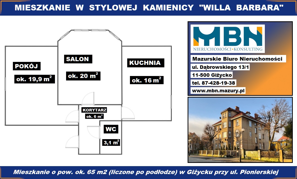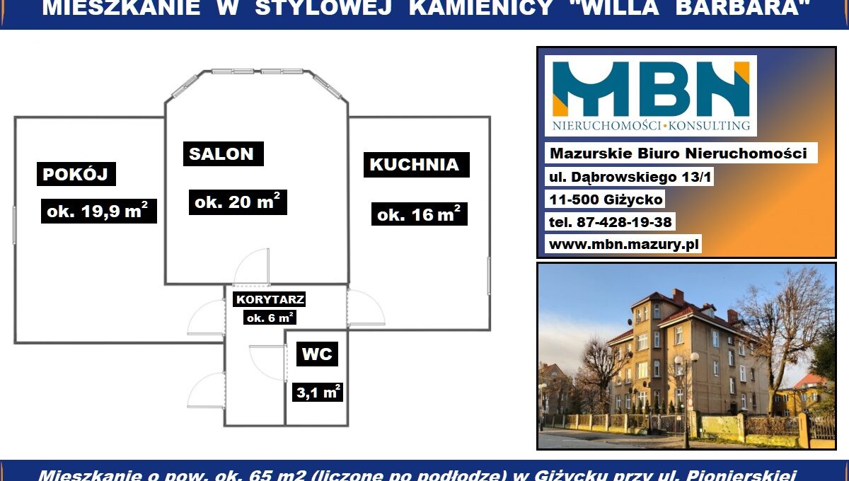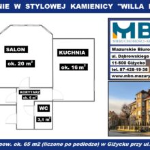 Dwupokojowe mieszkanie o pow. 53,20m2 w kamienicy „Willa Barbara” w Giżycku przy ul. Pionierskiej