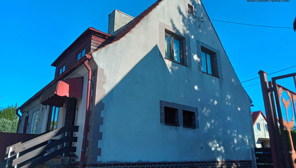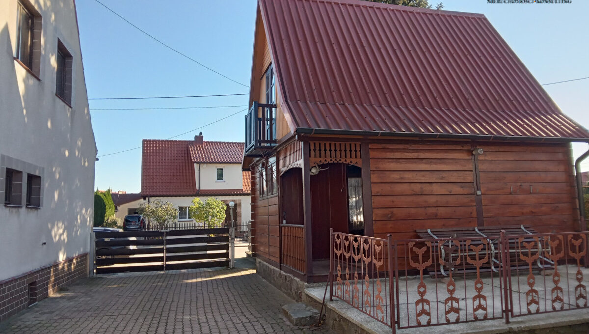 Wchodząc na posesje pierwszy od prawej strony znajduje się dom mieszkalny w zabudowie bliźniaczej,