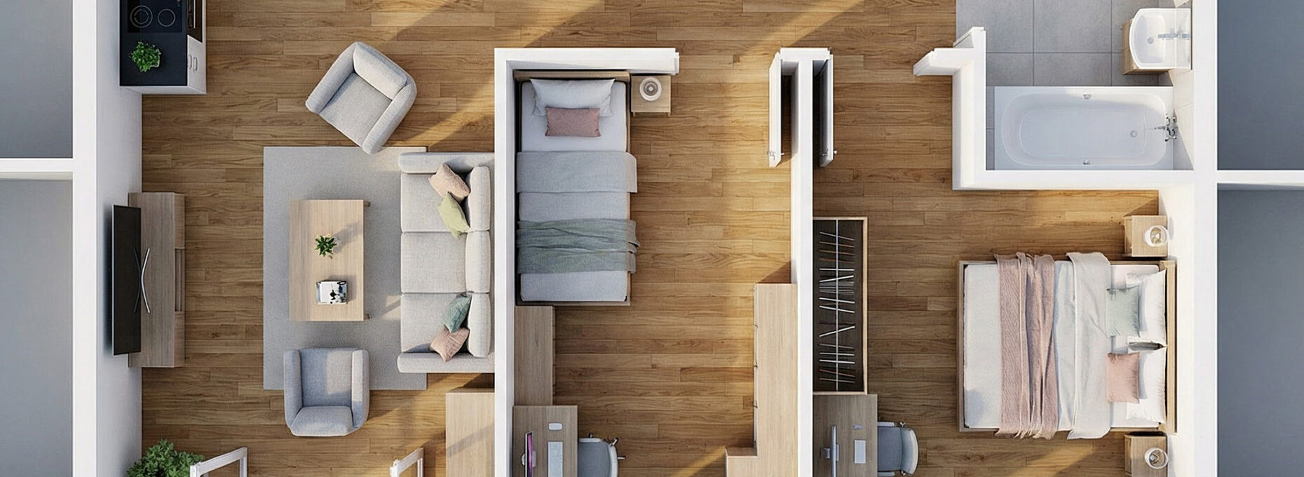 6 mieszkań dwupokojowych (1 x parter, 2 x I piętro, 2 x II piętro oraz 1 x III piętro).