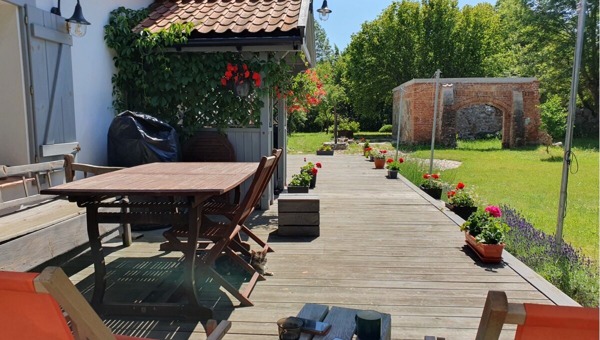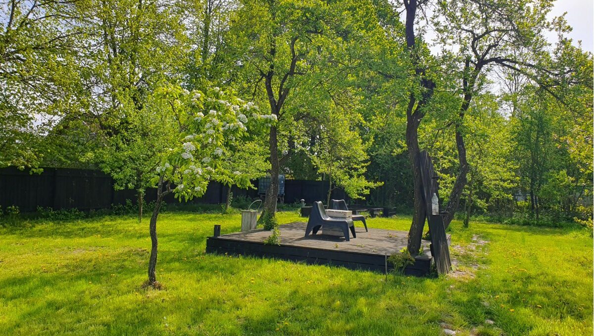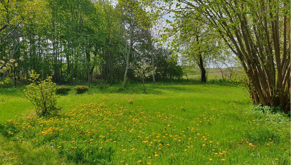 • Na działce drzewa owocowe (wiśnia, śliwy, grusza, jabłoń, orzech laskowy i włoski), aronia, porzeczki oraz dorodne lipy i jesiony od strony drogi;