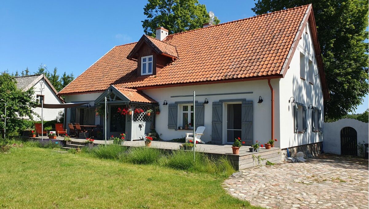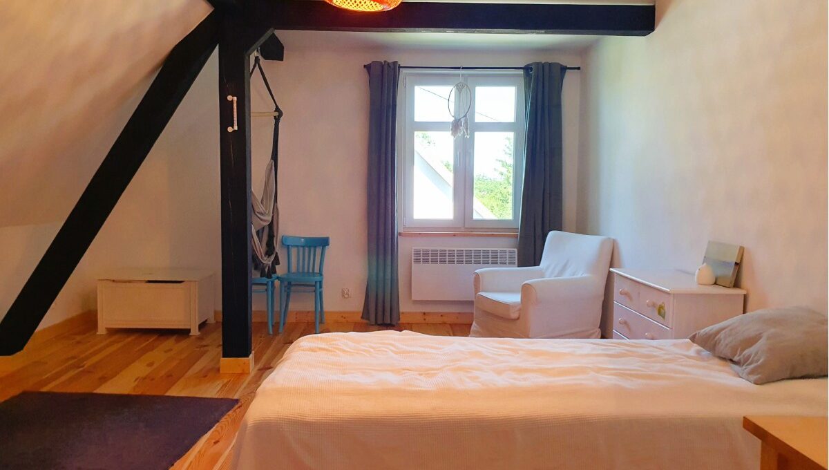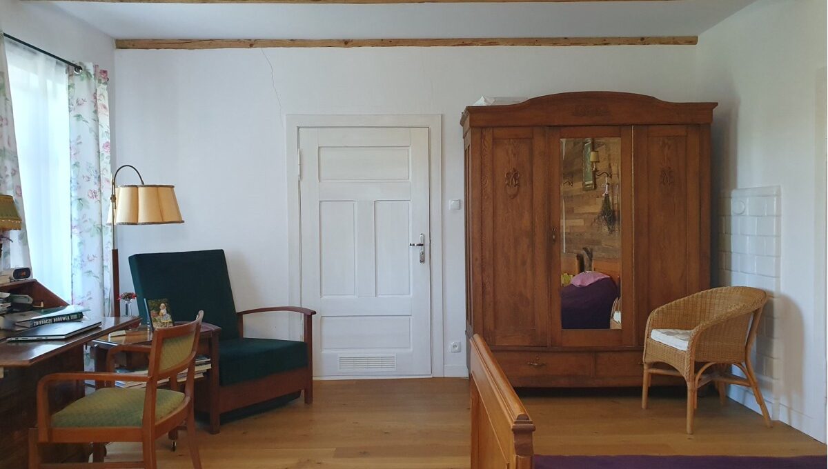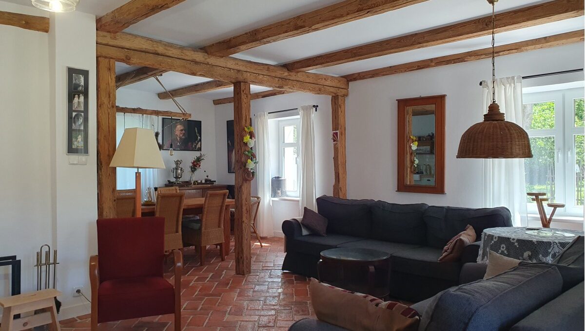 • Budynek murowany z cegły na kamiennym fundamencie, wybudowany w 1939r w roku 2021 wykonano generalny remont wraz z termomodernizacją obejmujący: wymianę więźby dachowej, ocieplenie dachu i ścian zewnętrznych szarym styropianem, wymianę okien, nowe podłogi, nowe drzwi i futryny nowe instalacje, nowe kominy, zewnętrzne oświetlenie;
