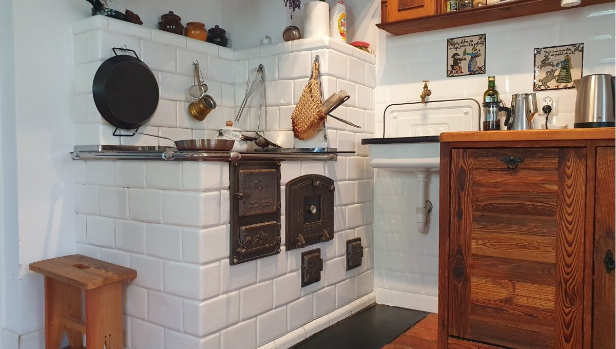 • Ogrzewanie: elektryczne na parterze podłogowe, na poddaszu grzejniki elektryczne w pokojach a w łazienkach podłogowe, nowy piece kaflowy w kuchni oraz w salonie na parterze;