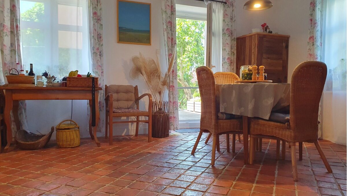• Podłogi: na parterze w kuchni, w salonie i jadalni cegła, w sypialni deska barlinecka, na poddaszu deska olejowana, w łazienkach terakota;