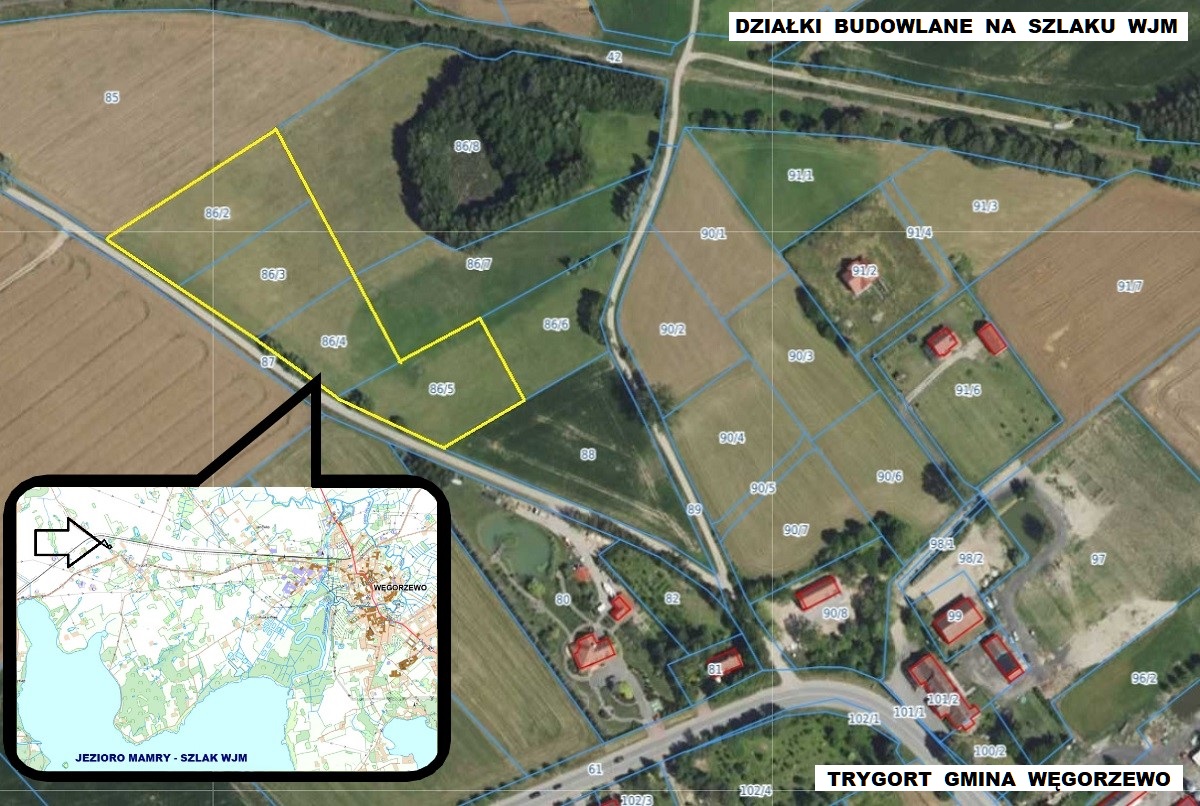 Teren zlokalizowany jest w miejscowości Trygort koło Węgorzewa (ok.5km). Nieruchomość składa się z czterech działek. Na każdą działkę wydane są decyzje o warunkach zabudowy.