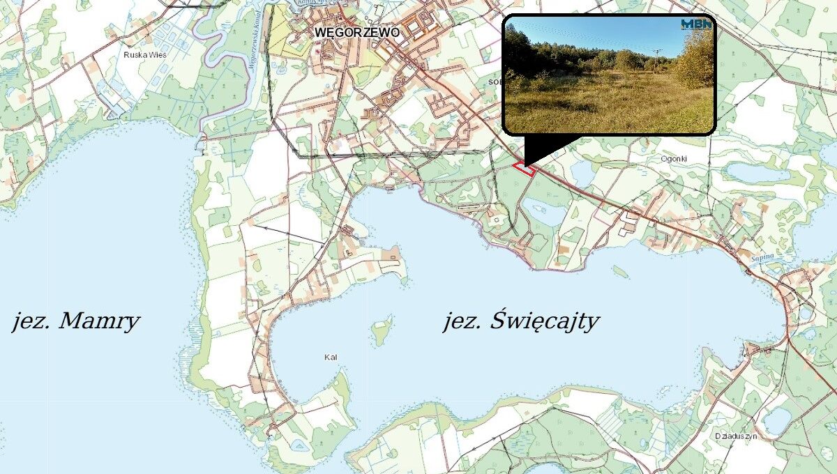 Działka przeznaczona pod zajazd z parkingiem lub stację paliw, myjnię. Nieruchomość zlokalizowana przy głównej drodze do Giżycko – Węgorzewo tzn. przy drodze krajowej 63.