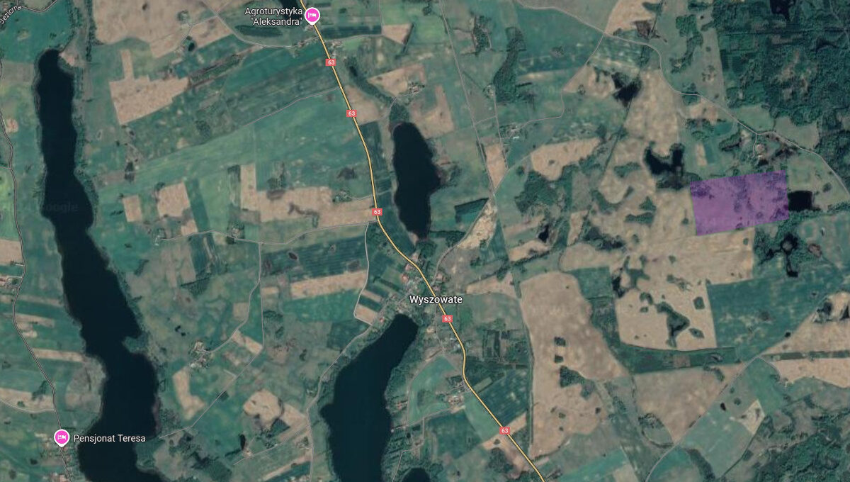 Teren na uboczu wsi w okolicy lasu o łącznej pow. 20,2557ha Wyszowate gmina Miłki