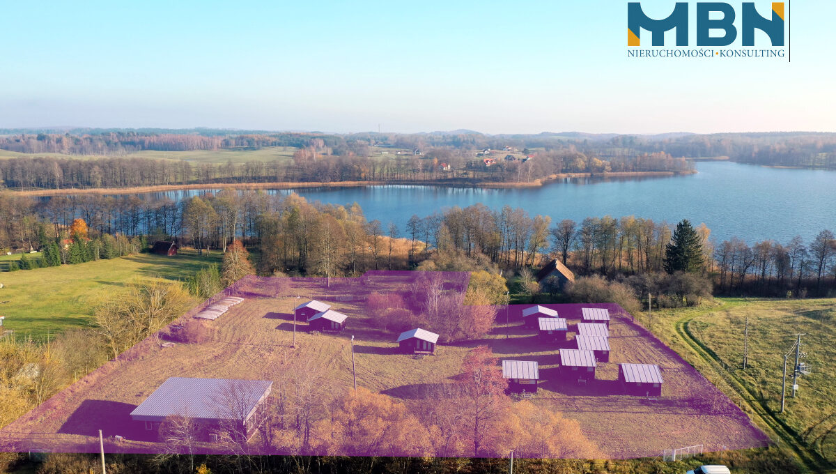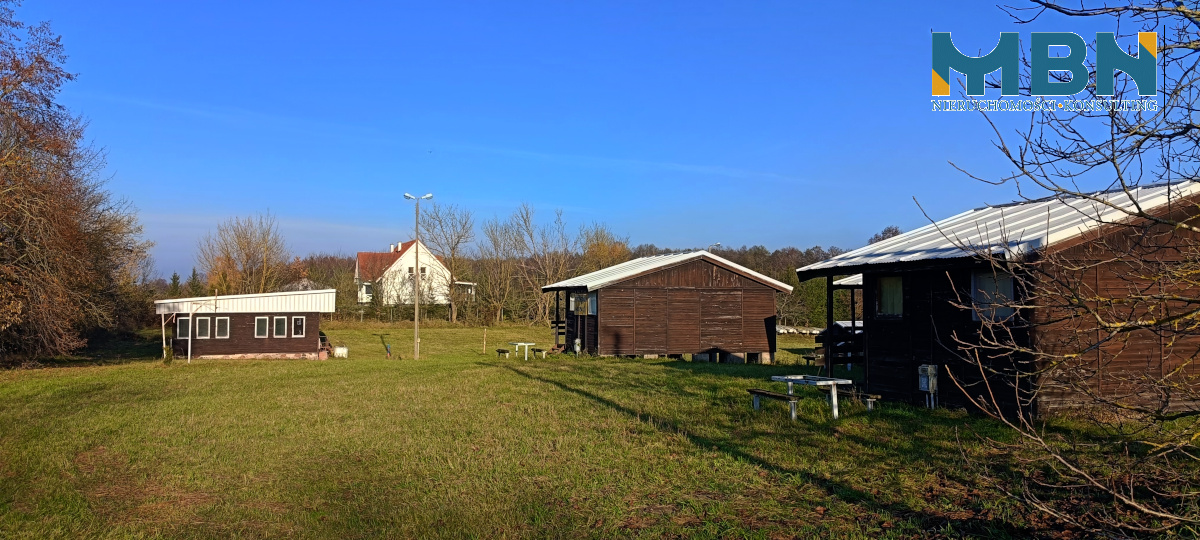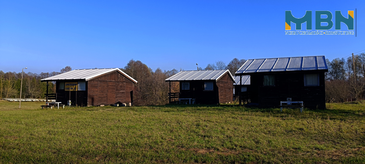 Przedmiotem sprzedaży jest zabudowana 11 budynkami kempingowymi (o pow. 34m2 każdy – 372m2 pow. użytkowa łączna) oraz podpiwniczonym budynkiem świetlicowym o pow. ok. 100m2 (podpiwniczony) działka gruntu o nr geod. 74/11 o powierzchni 11200m2 – Nieruchomość w użytkowaniu wieczystym do 2089-12-05.