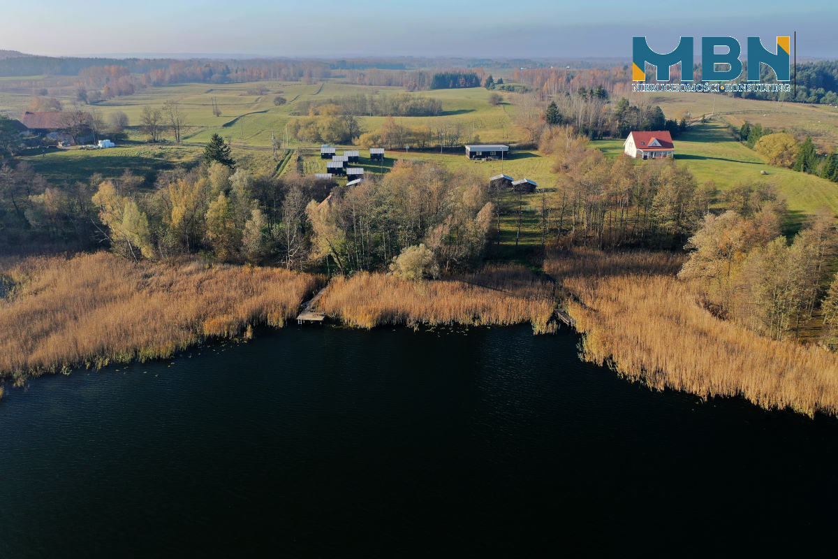 Zabudowana działka o pow. 1,1200ha z linią brzegową Jeziora